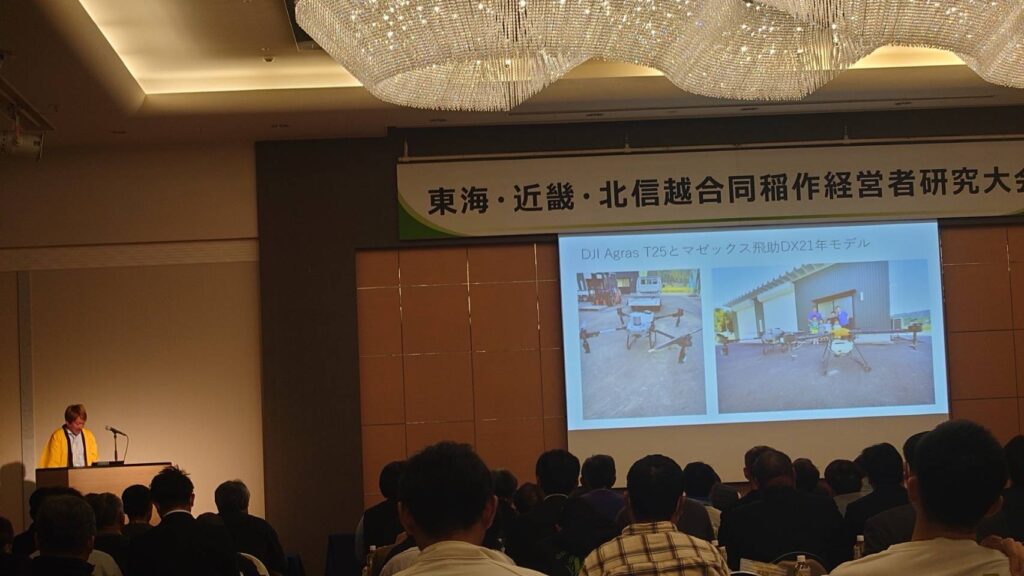 稲作経営者研究大会!In福井‼️ 2025年12月2日 最終更新日時 : 2025年12月2日 shimazakinouen1584 12月1日に稲作経営者会議の東海・近畿・北信越ブロックの大会が福井で行われました。 そこでRTKを活用したドローンの発表をさせていただきました。 大勢の前で発表するのは緊張しましたが無事やり遂げられていい発表ができたと思います。
